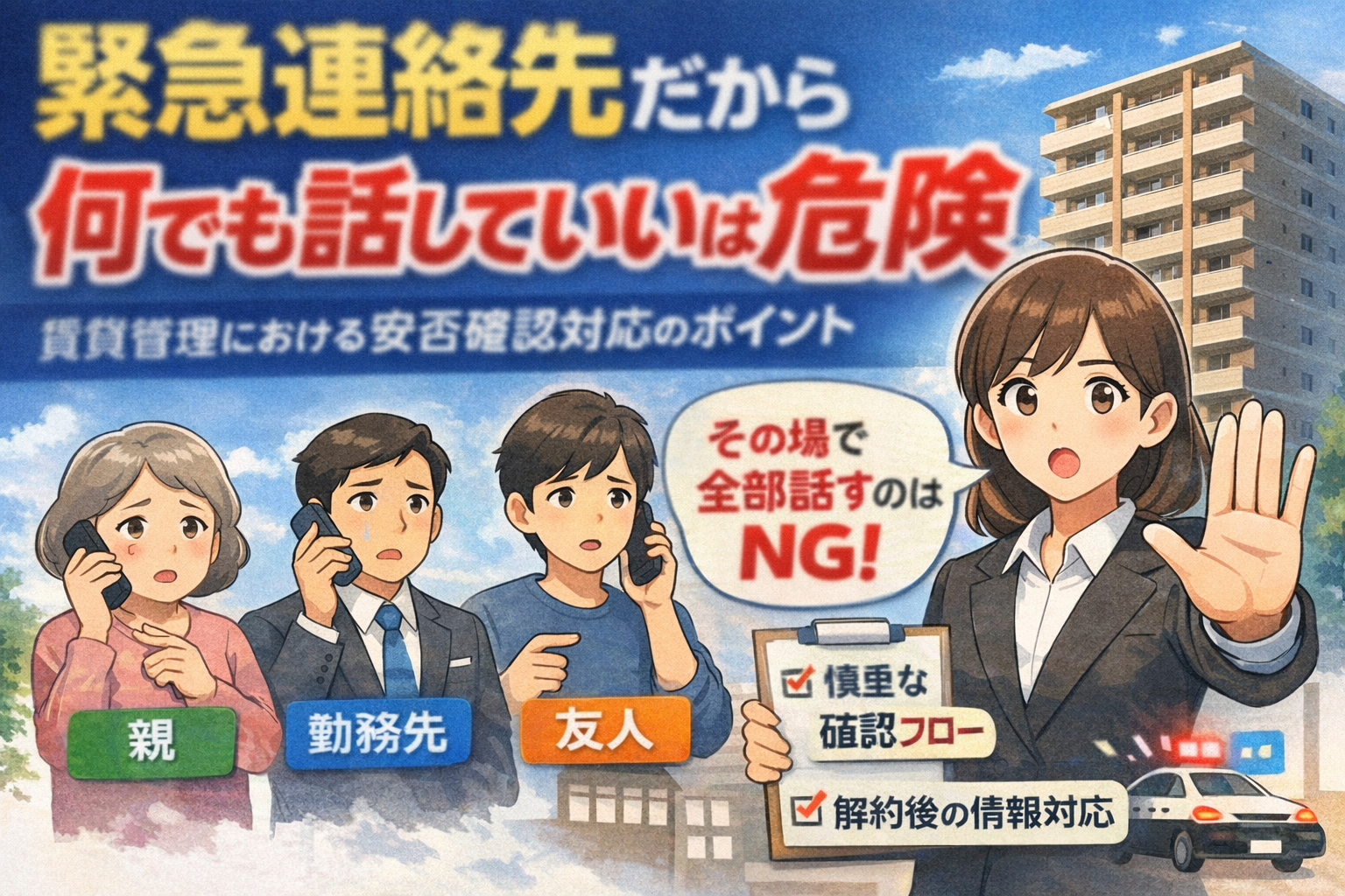 緊急連絡先でも、勤務先でも、友人でも、管理会社が契約者情報を安易に話すのは危険です。
